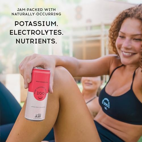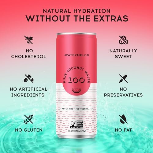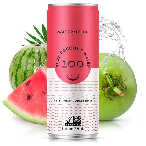 100 Coconuts Watermelon Pure Coconut-100% Pure Coconut Water – Low Calorie All-Pure Drink with Electrolytes – Naturally Candy, no preservatives- Non-GMO, 11 fl oz, Pack of 12 (Pure Coconut Water)